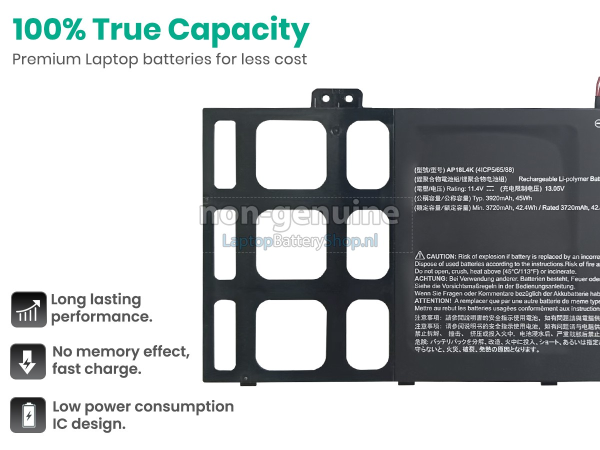 We have strict requirements on the product performance and safety. The Acer TravelMate P614 TMP614-51-G2-532B battery must go through a series of rigorous quality inspections and safety tests. In addition, our Acer TravelMate P614 TMP614-51-G2-532B replacement battery is sold directly on laptopbatteryshop.nl, so the price is about 20-50% lower than that of other middlemen and physical shops.