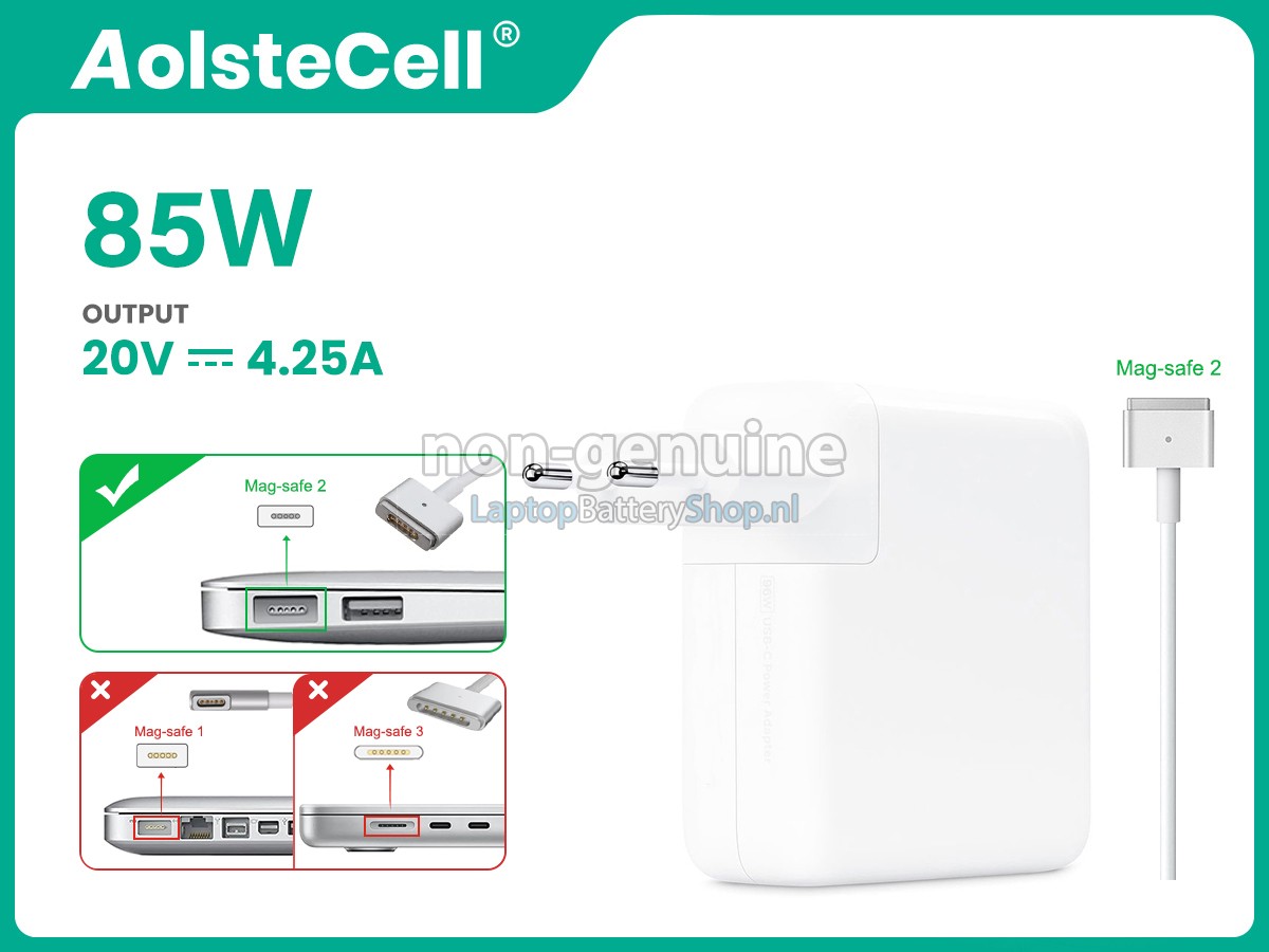 Fast Charging: With advanced charging technology, our Apple 85W 20V-4.25A MAGSAFE 2 adapter provides quick and efficient power, ensuring your device charges rapidly so you can stay productive.