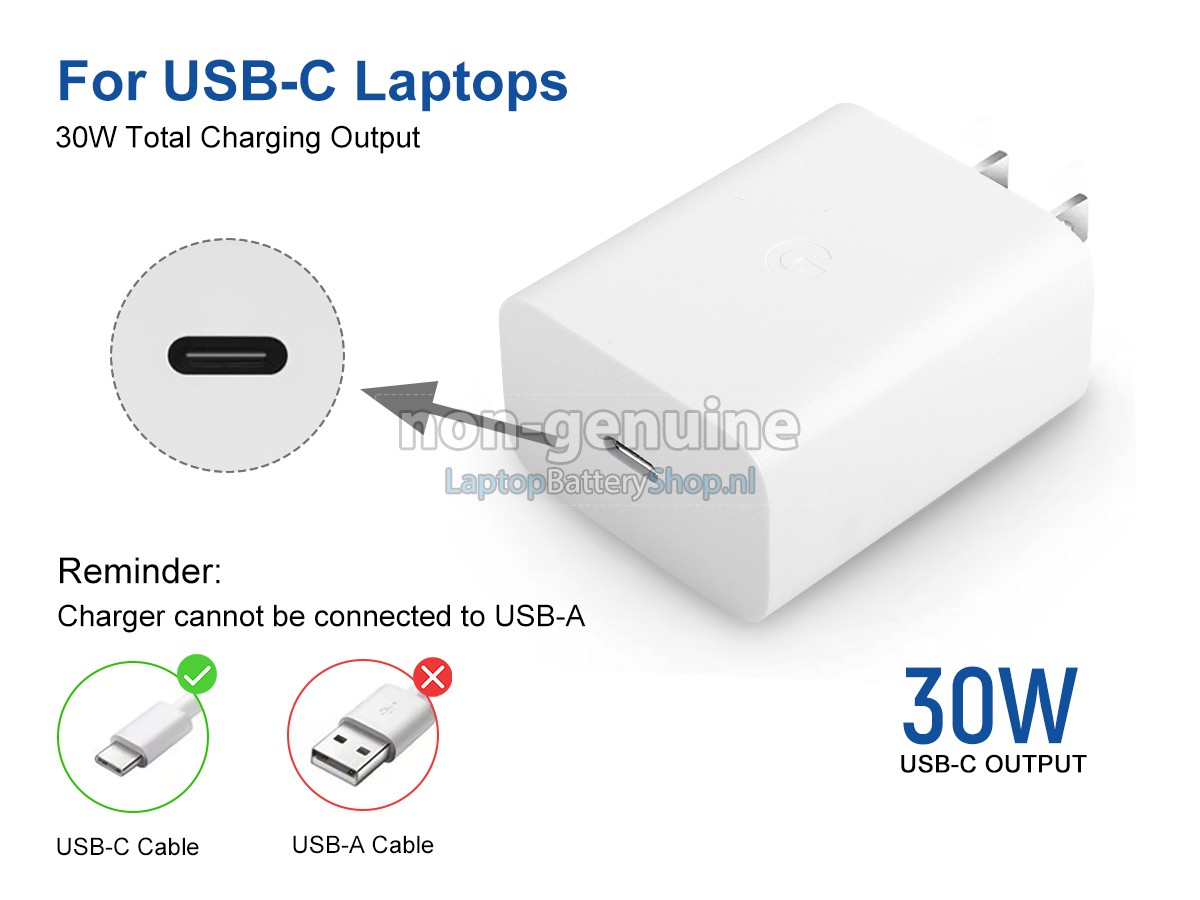 Your privacy and security of information are of the utmost importance here at LaptopBatteryShop.nl. We have taken all the necessary steps to ensure that your shopping experience with us is 100% safe and secure. Buy Google 30W USB-C POWER CHARGER adapter with confidence!