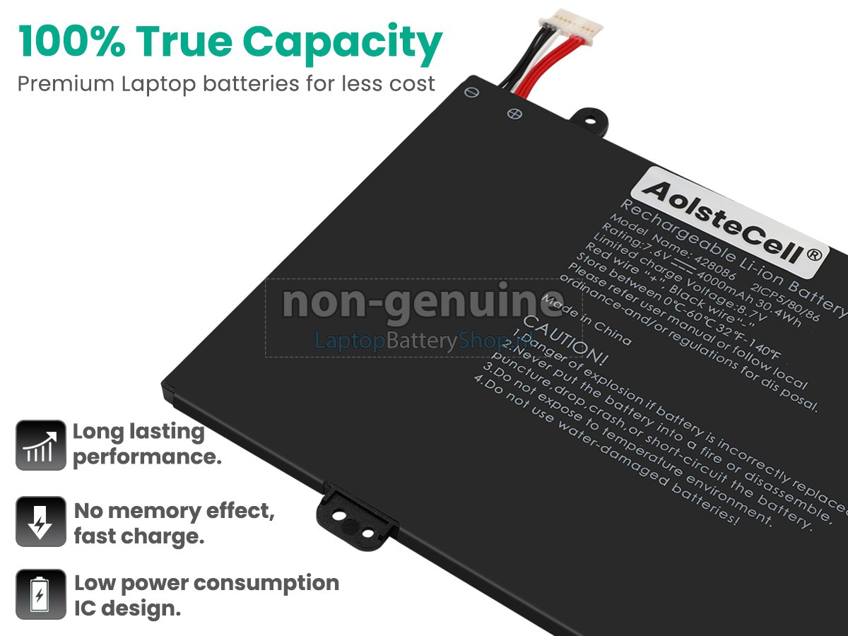 We offer 12 months warranty on the AolsteCell 428086 replacement notebook battery! During the product warranty days, the unartificial defective product is free to be replaced, and we will afford all shipping fee.
