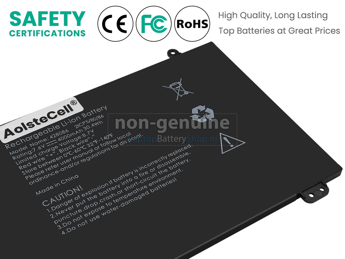 We have strict requirements on the product performance and safety. The AolsteCell 428086 battery must go through a series of rigorous quality inspections and safety tests. In addition, our AolsteCell 428086 replacement battery is sold directly on laptopbatteryshop.nl, so the price is about 20-50% lower than that of other middlemen and physical shops.