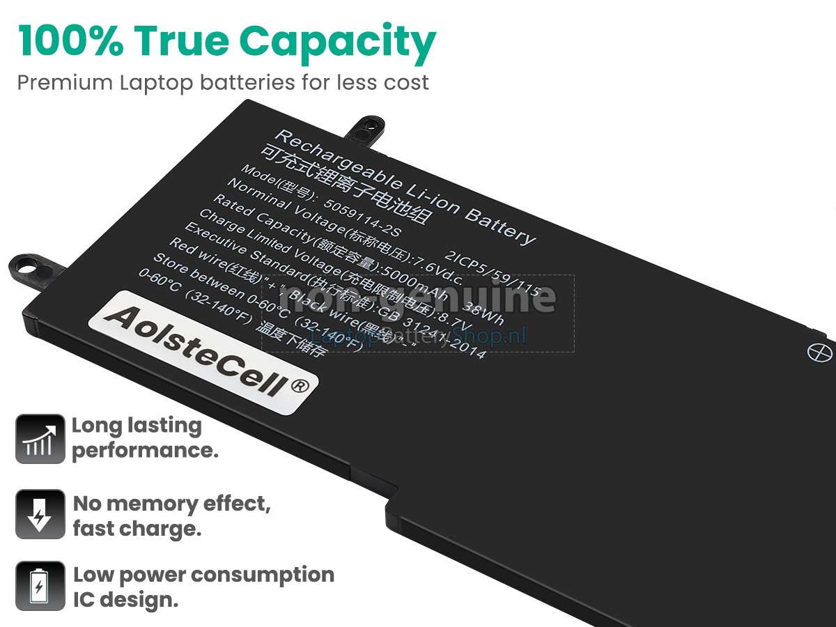 We have strict requirements on the product performance and safety. The AolsteCell 5059114-2S battery must go through a series of rigorous quality inspections and safety tests. In addition, our AolsteCell 5059114-2S replacement battery is sold directly on laptopbatteryshop.nl, so the price is about 20-50% lower than that of other middlemen and physical shops.