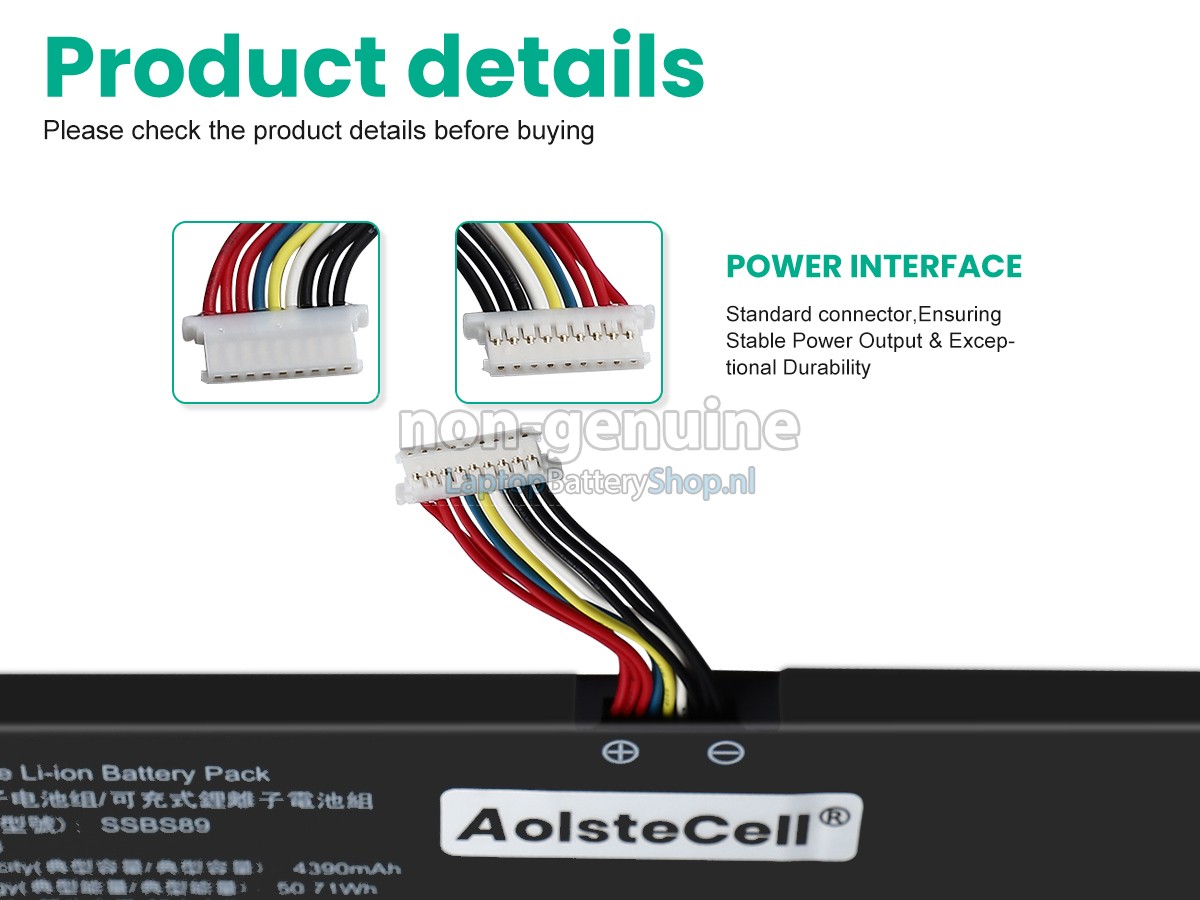 We have strict requirements on the product performance and safety. The AolsteCell SSBS89 battery must go through a series of rigorous quality inspections and safety tests. In addition, our AolsteCell SSBS89 replacement battery is sold directly on laptopbatteryshop.nl, so the price is about 20-50% lower than that of other middlemen and physical shops.