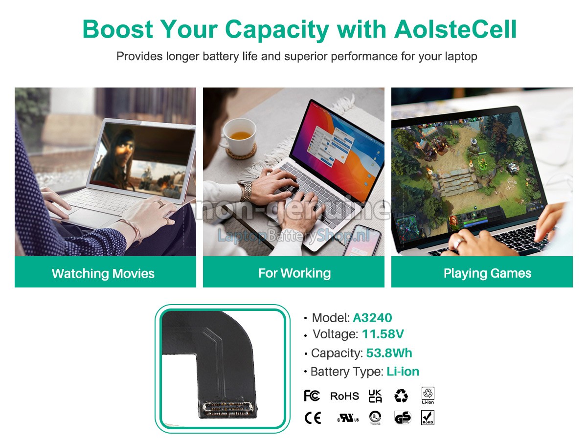 We have strict requirements on the product performance and safety. The Apple MacBook Air M4 10 CPU/8 GPU 13 inch 2025 battery must go through a series of rigorous quality inspections and safety tests. In addition, our Apple MacBook Air M4 10 CPU/8 GPU 13 inch 2025 replacement battery is sold directly on laptopbatteryshop.nl, so the price is about 20-50% lower than that of other middlemen and physical shops.