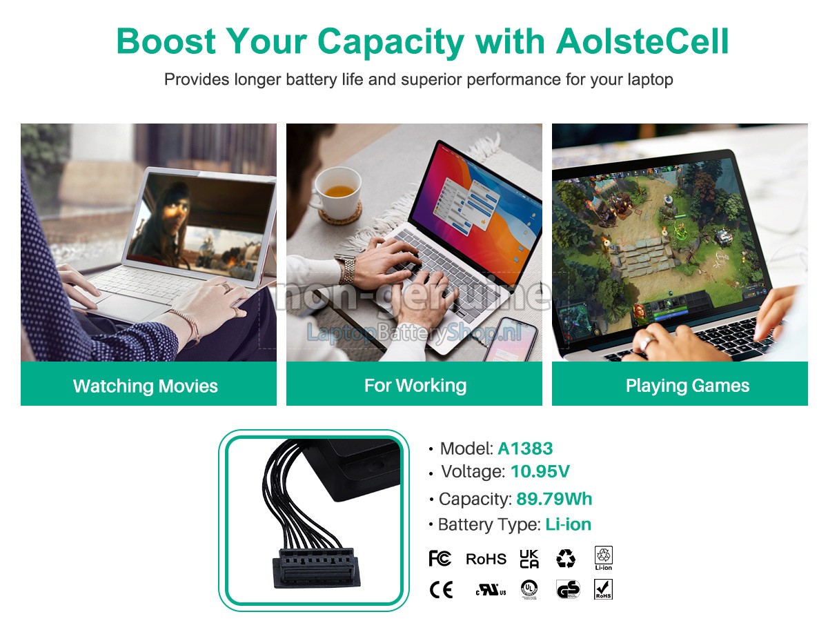 We have strict requirements on the product performance and safety. The Apple MacBook Pro Core I7 2.3GHZ 17 inch Unibody A1297(EMC 2352-1*) battery must go through a series of rigorous quality inspections and safety tests. In addition, our Apple MacBook Pro Core I7 2.3GHZ 17 inch Unibody A1297(EMC 2352-1*) replacement battery is sold directly on laptopbatteryshop.nl, so the price is about 20-50% lower than that of other middlemen and physical shops.