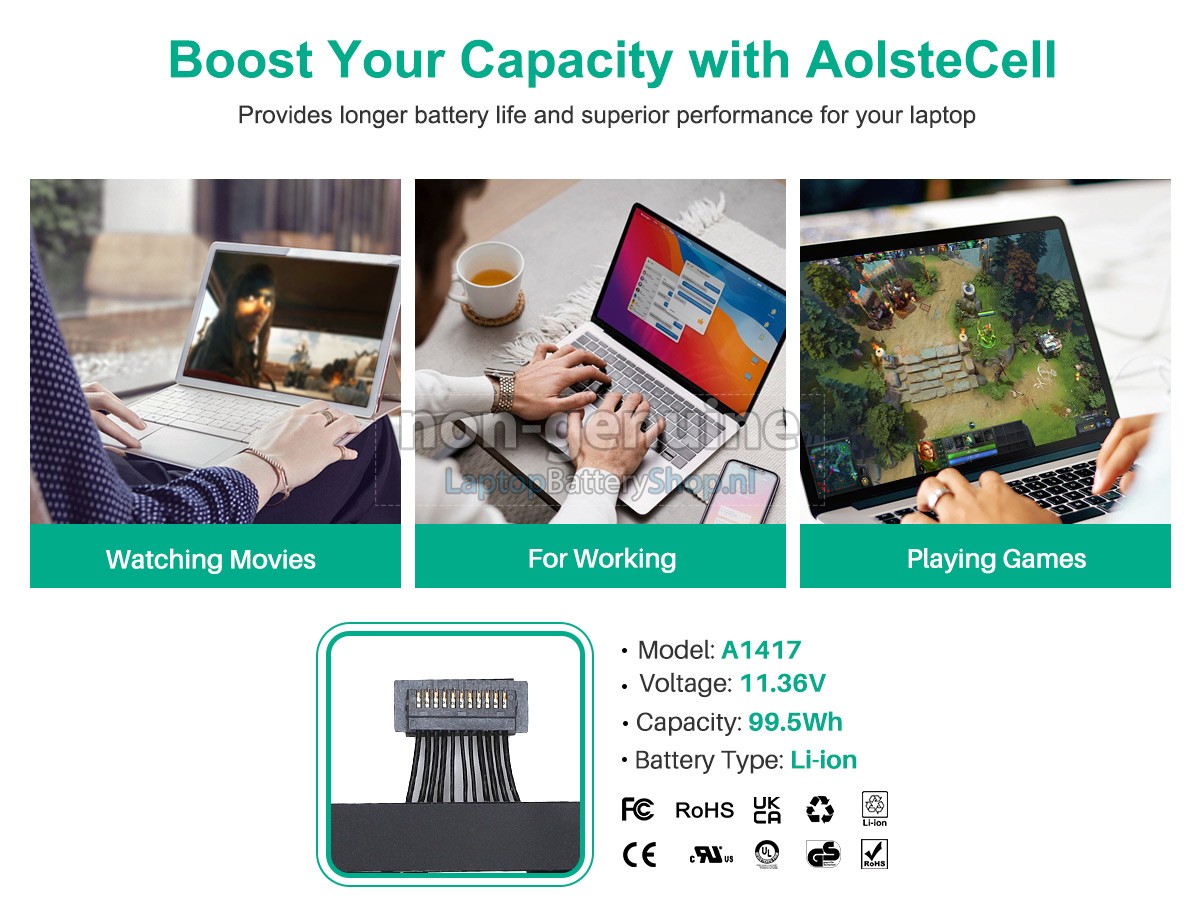 2. This battery(A1417) only fits for Apple Macbook Pro 15.5 Inch Retina A1398(EMC 2512)(Mid 2012) and A1398(EMC 2673)(Early 2013).3. Package Includes: 1 x Battery ,2 x Screwdrivers.