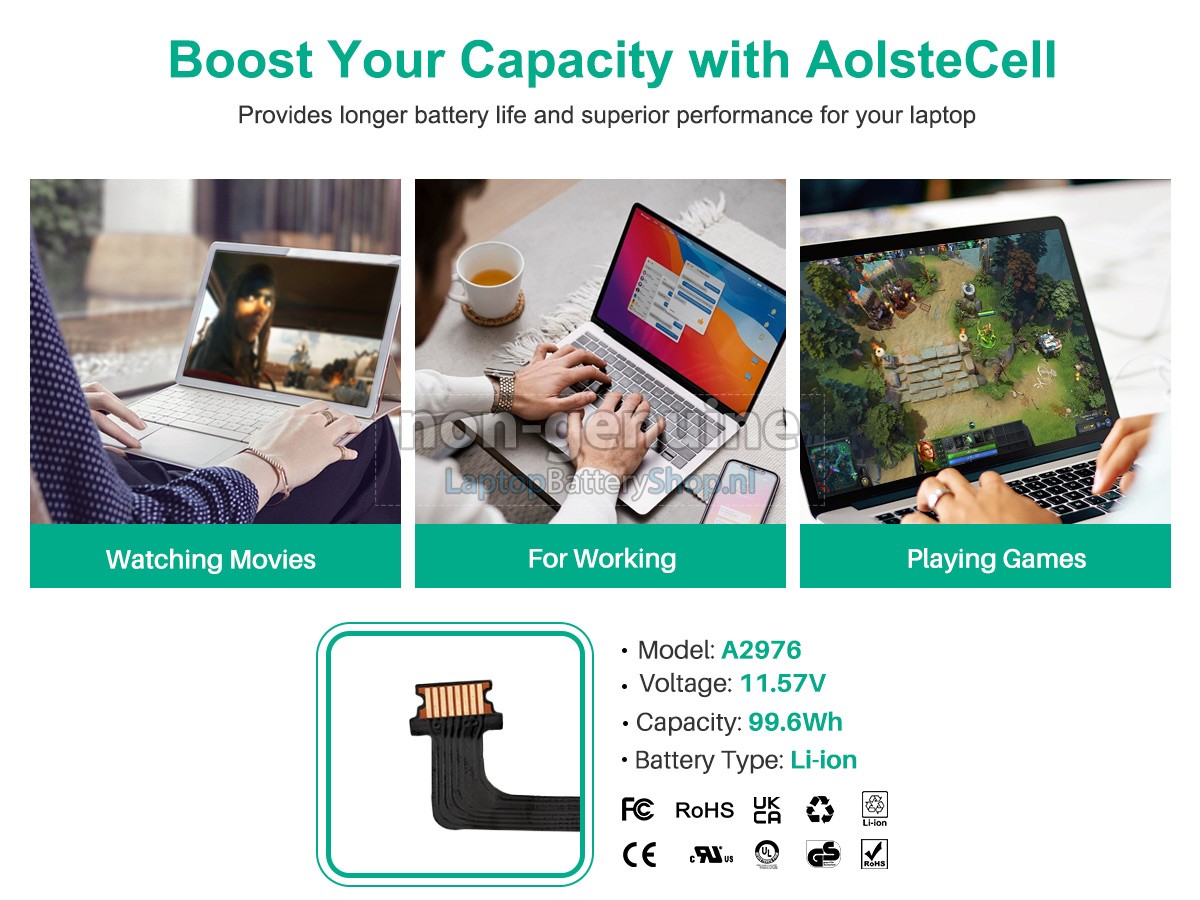 We have strict requirements on the product performance and safety. The Apple MacBook Pro M3 Pro 12 CPU 18 GPU 16 A2991 EMC 8408 battery must go through a series of rigorous quality inspections and safety tests. In addition, our Apple MacBook Pro M3 Pro 12 CPU 18 GPU 16 A2991 EMC 8408 replacement battery is sold directly on laptopbatteryshop.nl, so the price is about 20-50% lower than that of other middlemen and physical shops.