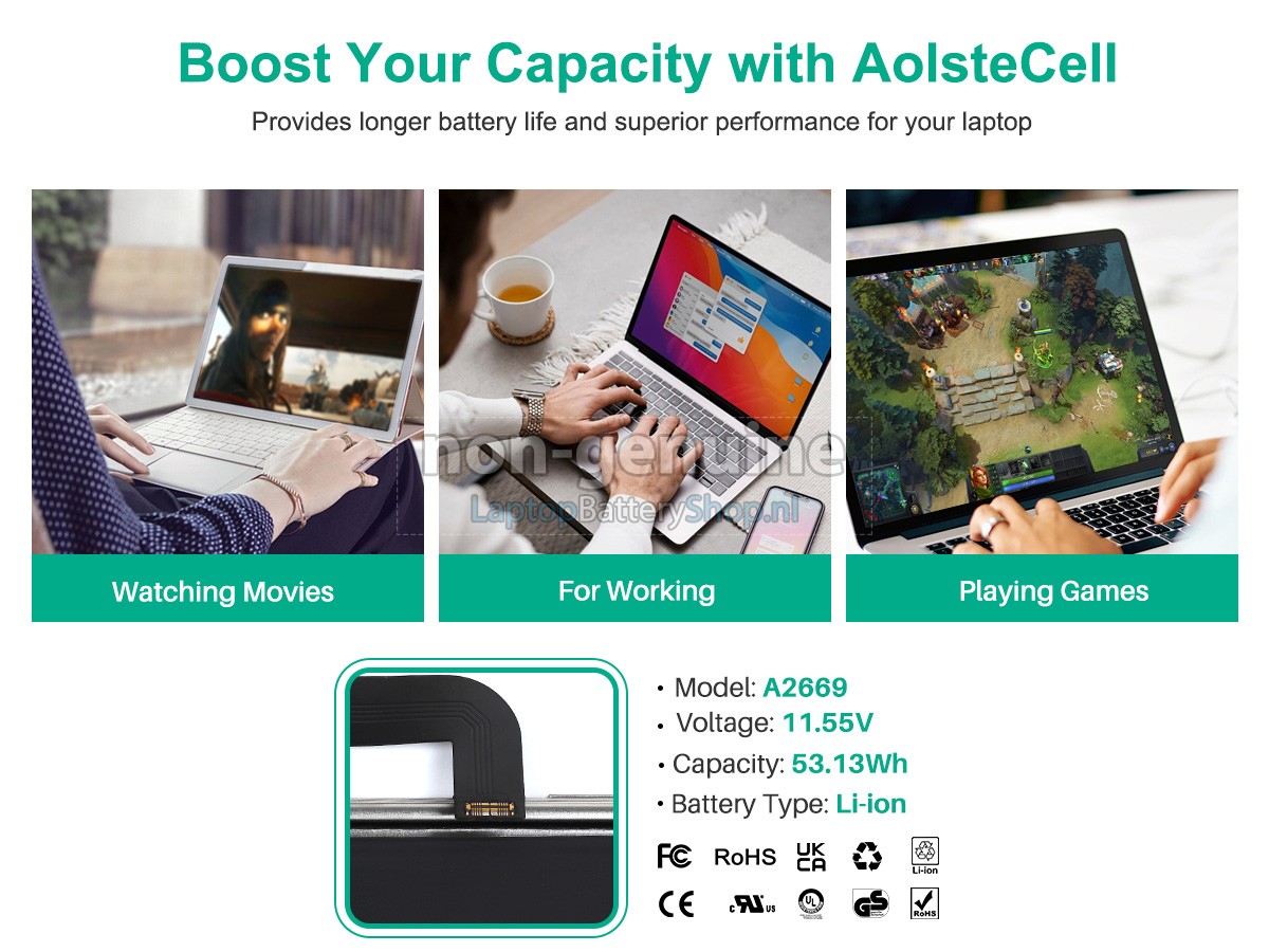 We have strict requirements on the product performance and safety. The Apple MLY43LL/A battery must go through a series of rigorous quality inspections and safety tests. In addition, our Apple MLY43LL/A replacement battery is sold directly on laptopbatteryshop.nl, so the price is about 20-50% lower than that of other middlemen and physical shops.