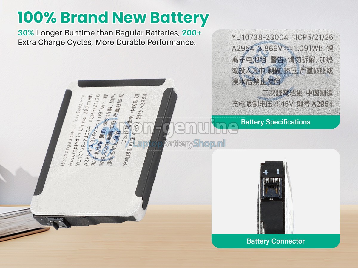 We have strict requirements on the product performance and safety. The Apple MRQE3CH/A watch battery must go through a series of rigorous quality inspections and safety tests. In addition, our Apple MRQE3CH/A replacement battery is sold directly on laptopbatteryshop.nl, so the price is about 20-50% lower than that of other middlemen and physical shops.