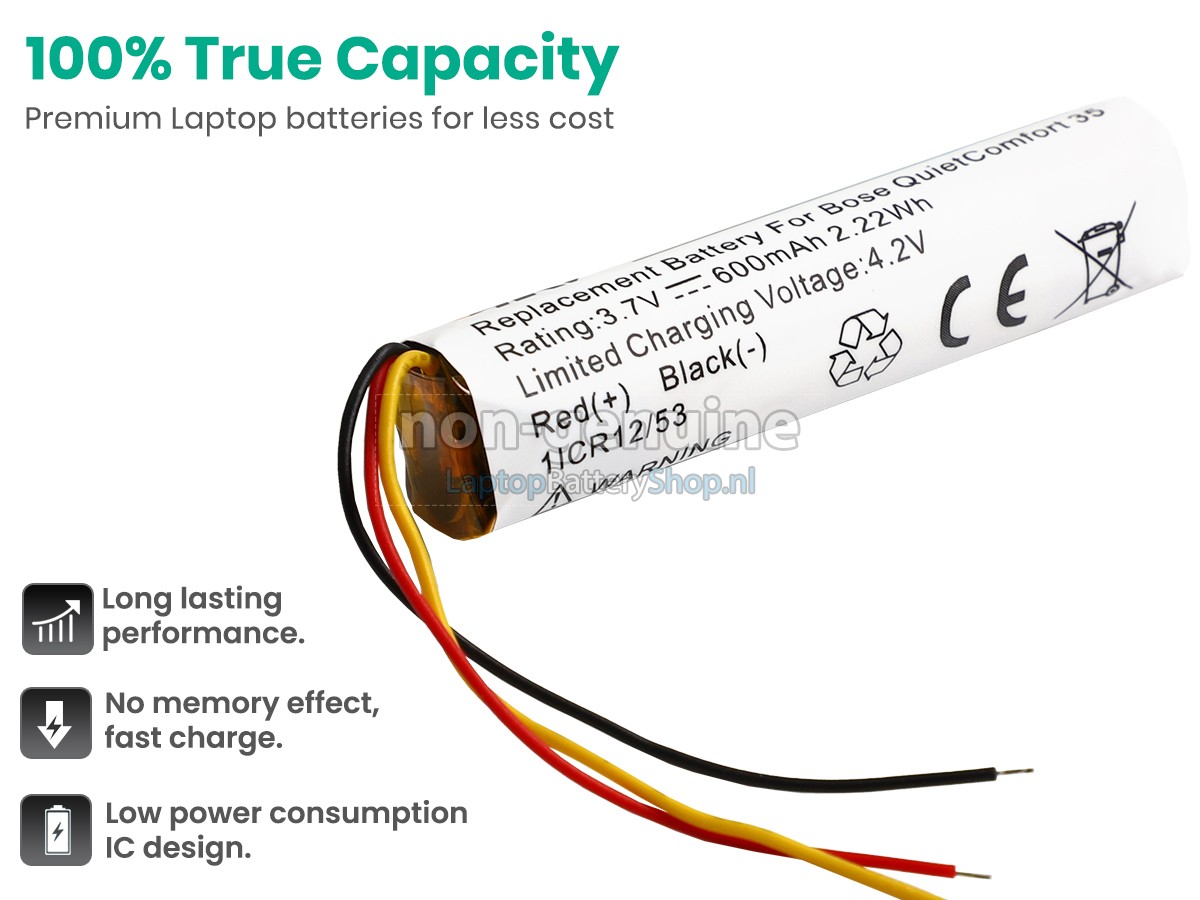 We have strict requirements on the product performance and safety. The Bose QC35 battery must go through a series of rigorous quality inspections and safety tests. In addition, our Bose QC35 replacement battery is sold directly on laptopbatteryshop.nl, so the price is about 20-50% lower than that of other middlemen and physical shops.