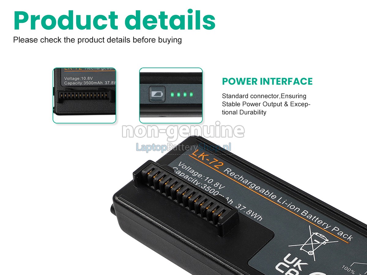 Grade A cells ensure fast charges and longer battery life.