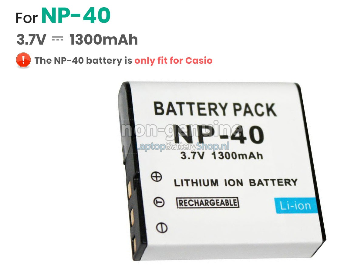 The long life Casio EX-P700 battery contains Grade A battery cells to ensure longer battery life and more charge cycles. Fast Delivery, Easy Returns, and 100% Refund for 30 Days. The NP-40 battery is exclusively compatible with Casio devices and cannot be used with Fujifilm brand products.
