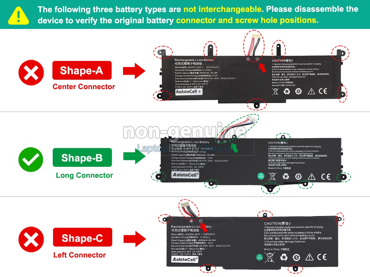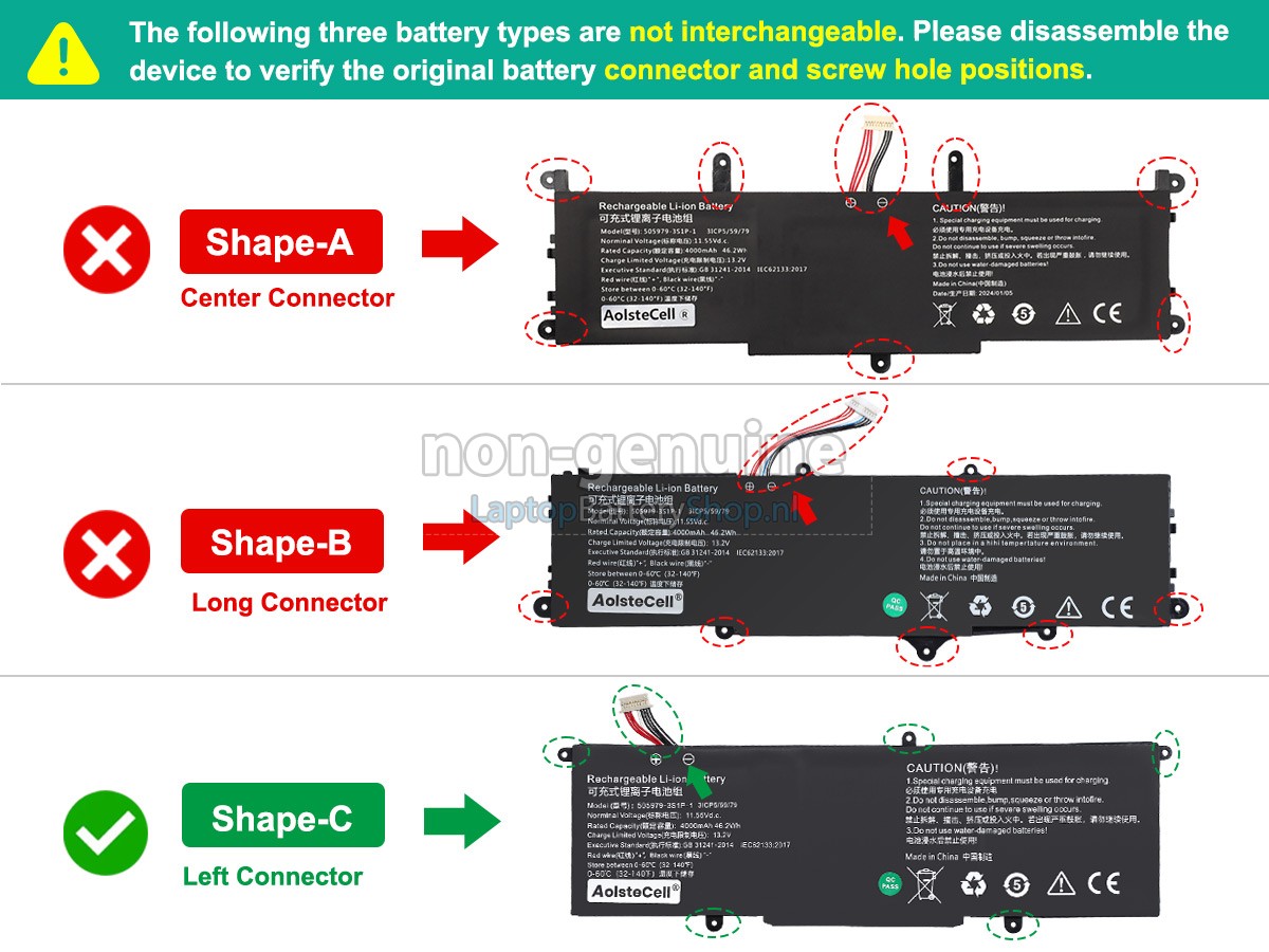 We have strict requirements on the product performance and safety. The CHUWI 505979-3S1P-1 battery must go through a series of rigorous quality inspections and safety tests. In addition, our CHUWI 505979-3S1P-1 replacement battery is sold directly on laptopbatteryshop.nl, so the price is about 20-50% lower than that of other middlemen and physical shops.