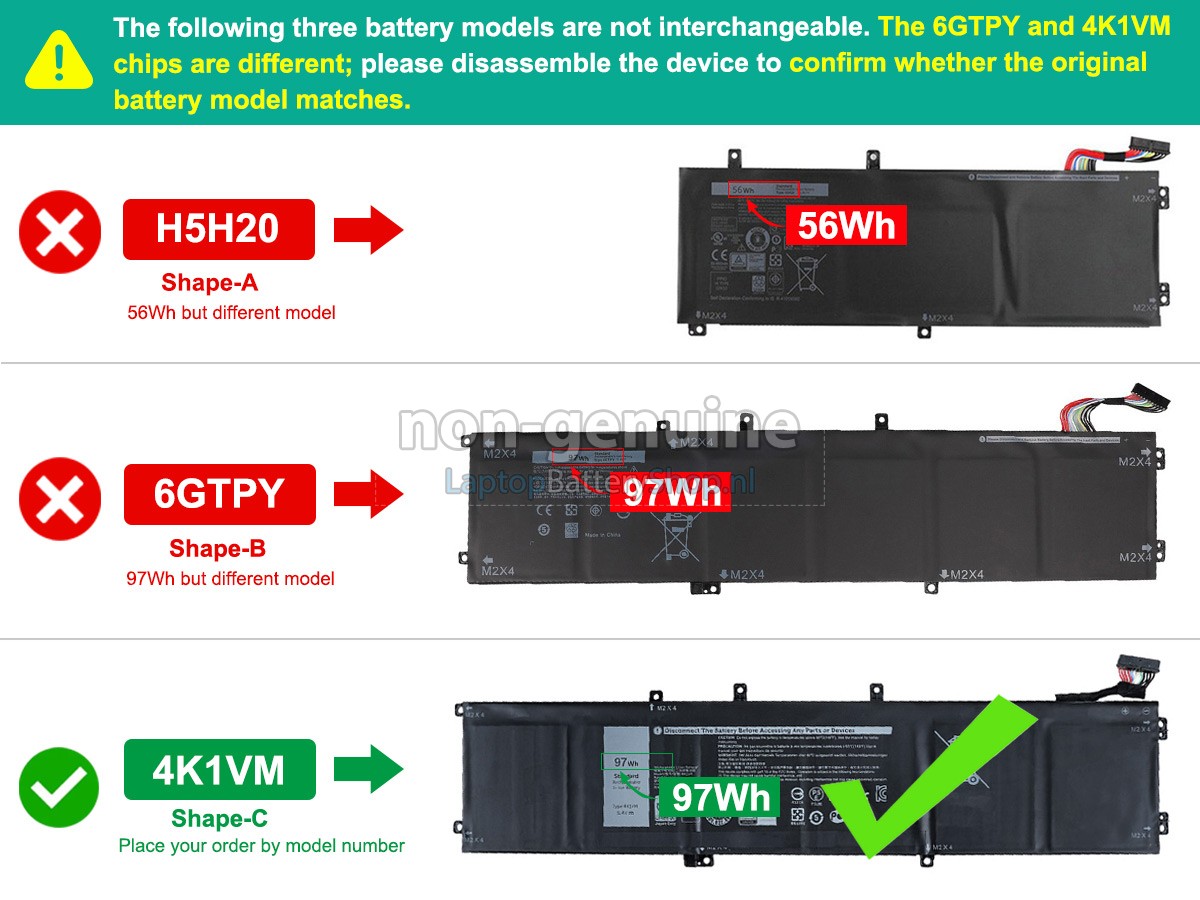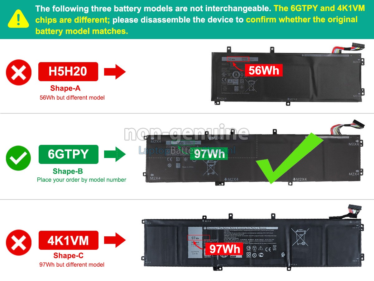 Please check the model and shape of your Dell P102F003 original battery(use Ctrl + F to search the model). Make sure you get the correct battery.