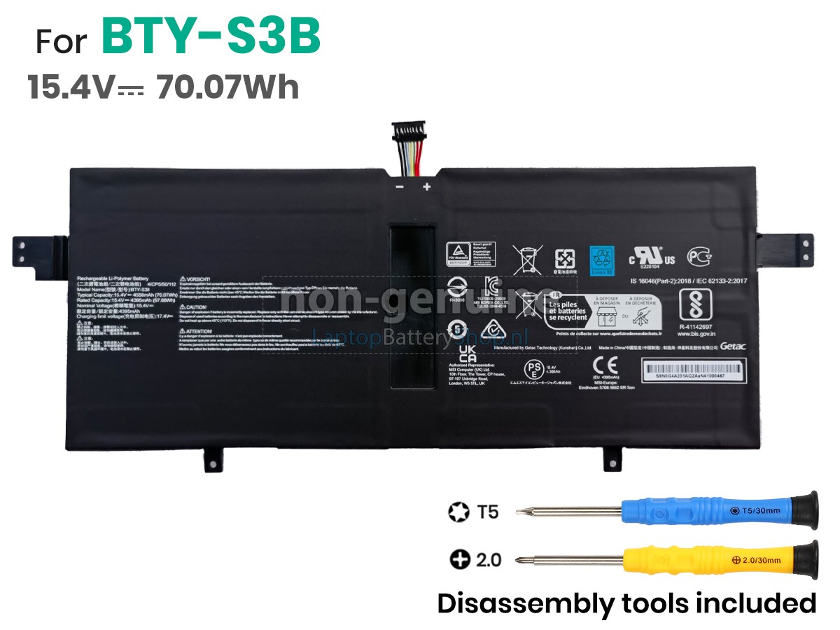 We have strict requirements on the product performance and safety. The MSI SUMMIT E13 FLIP EVO A13MT-227 battery must go through a series of rigorous quality inspections and safety tests. In addition, our MSI SUMMIT E13 FLIP EVO A13MT-227 replacement battery is sold directly on laptopbatteryshop.nl, so the price is about 20-50% lower than that of other middlemen and physical shops.
