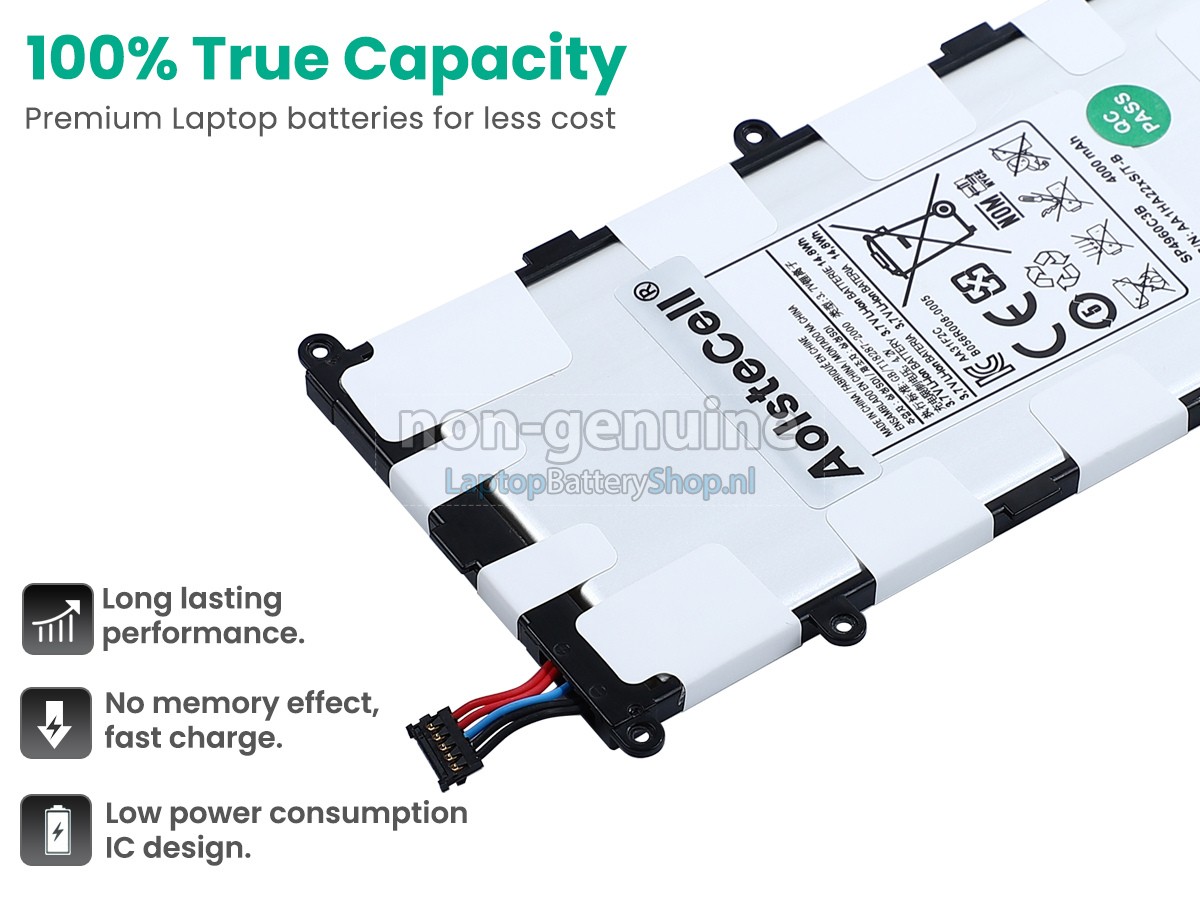 The long life Samsung GT-P6201 battery contains Grade A battery cells to ensure longer battery life and more charge cycles. Fast Delivery, Easy Returns, and 100% Refund for 30 Days. Note: Please open the computer to make sure the battery model is consistent with the picture before placing the order.