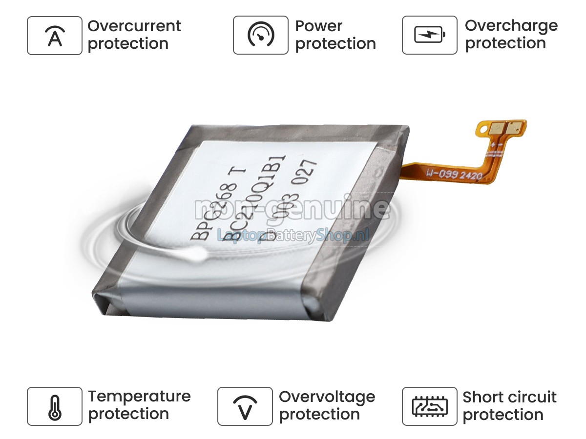 We have strict requirements on the product performance and safety. The Samsung SM-R960 WATCH 6 CLASSIC 47MM (2023) watch battery must go through a series of rigorous quality inspections and safety tests. In addition, our Samsung SM-R960 WATCH 6 CLASSIC 47MM (2023) replacement battery is sold directly on laptopbatteryshop.nl, so the price is about 20-50% lower than that of other middlemen and physical shops.