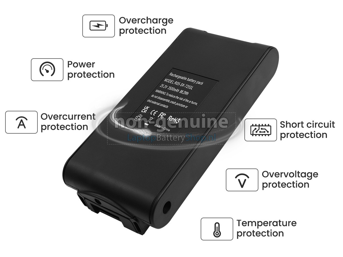 We have strict requirements on the product performance and safety. The Shark R05-SK-725SL vacuum cleaner battery must go through a series of rigorous quality inspections and safety tests. In addition, our Shark R05-SK-725SL replacement battery is sold directly on laptopbatteryshop.nl, so the price is about 20-50% lower than that of other middlemen and physical shops.