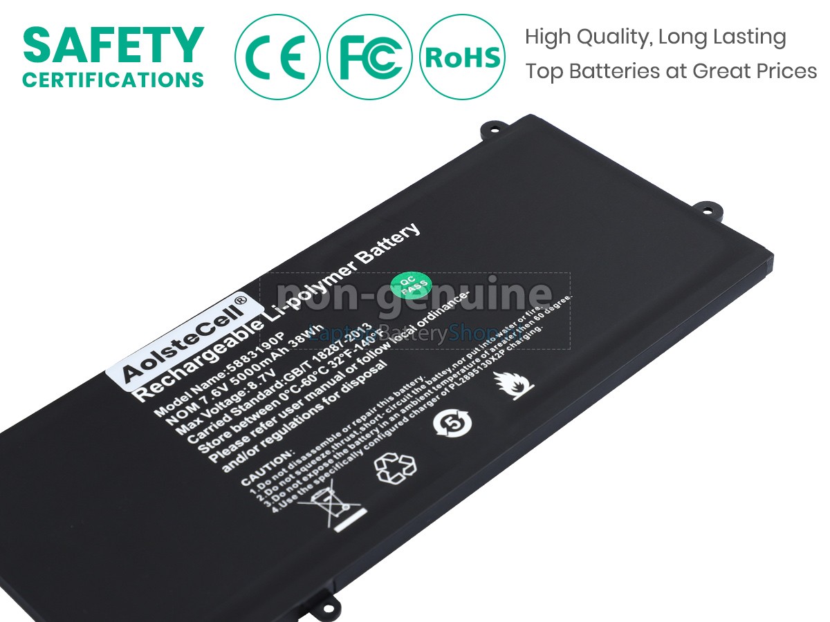 We have strict requirements on the product performance and safety. The Vastking 5883190P battery must go through a series of rigorous quality inspections and safety tests. In addition, our Vastking 5883190P replacement battery is sold directly on laptopbatteryshop.nl, so the price is about 20-50% lower than that of other middlemen and physical shops.